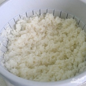 Рис варим любимым способом. Откидываем на дуршлаг, но не промываем.
