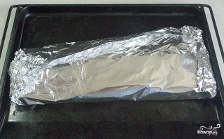 Заворачиваем рыбу в фольгу, кладем на противень.